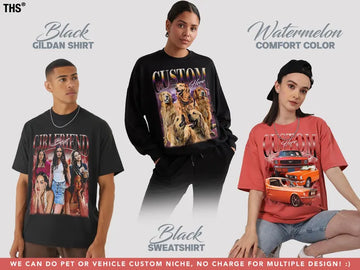 Custom Vintage Bootleg Rap Photo Tee, Personalized Unisex T-shirt Gift for Girlfriend & Boyfriend